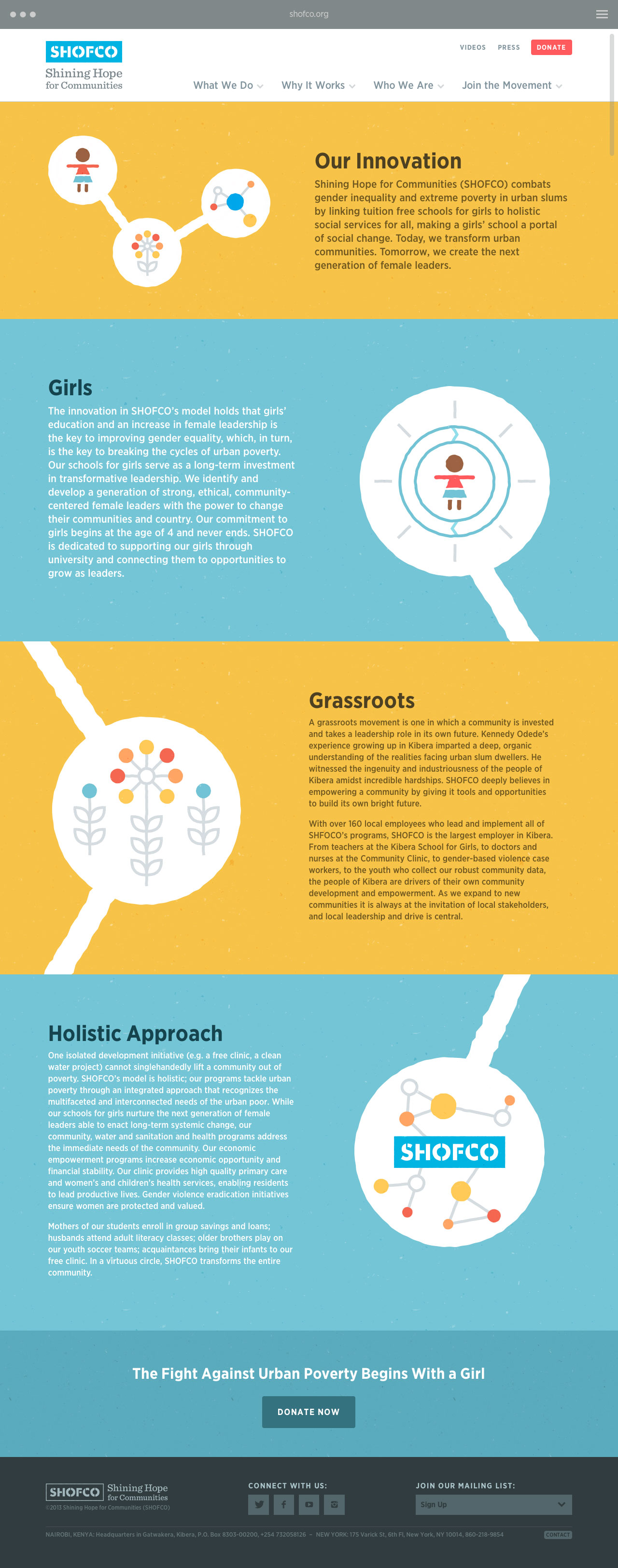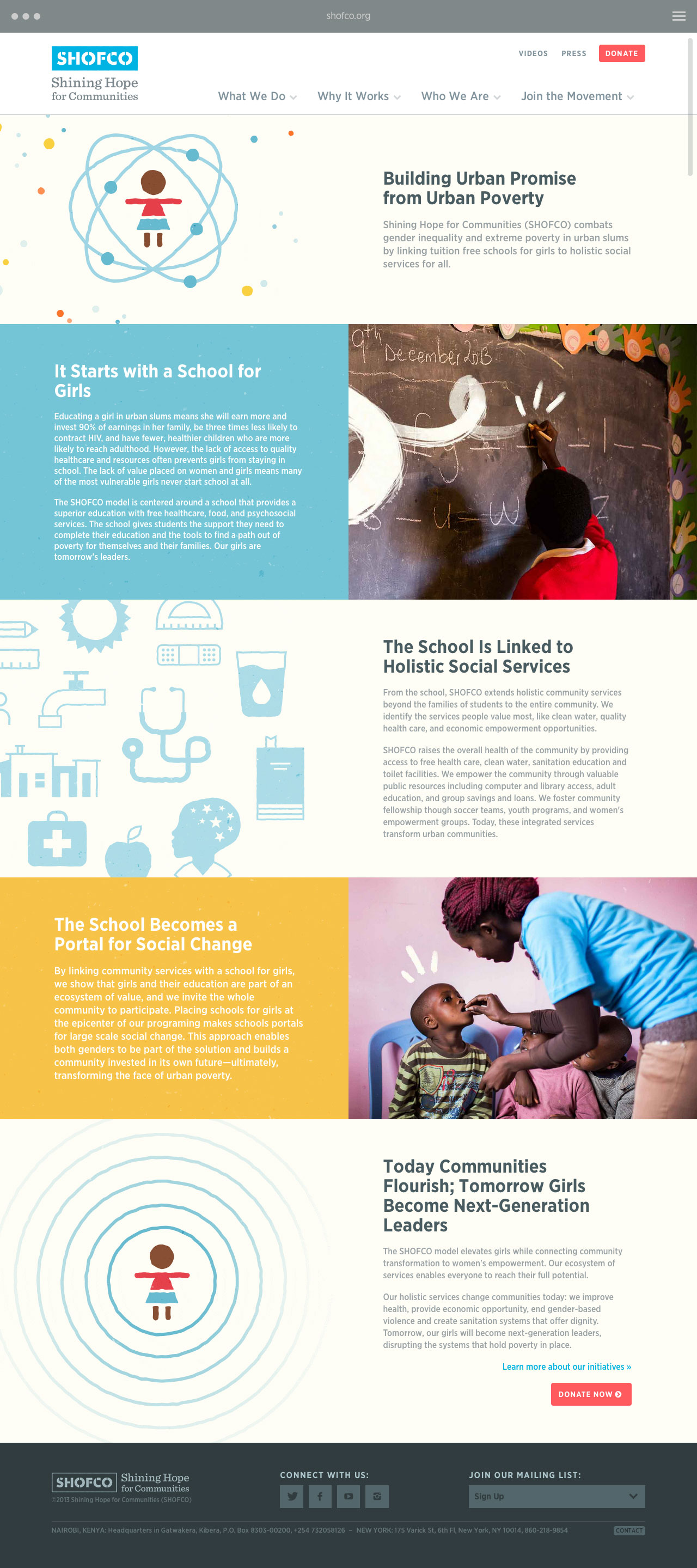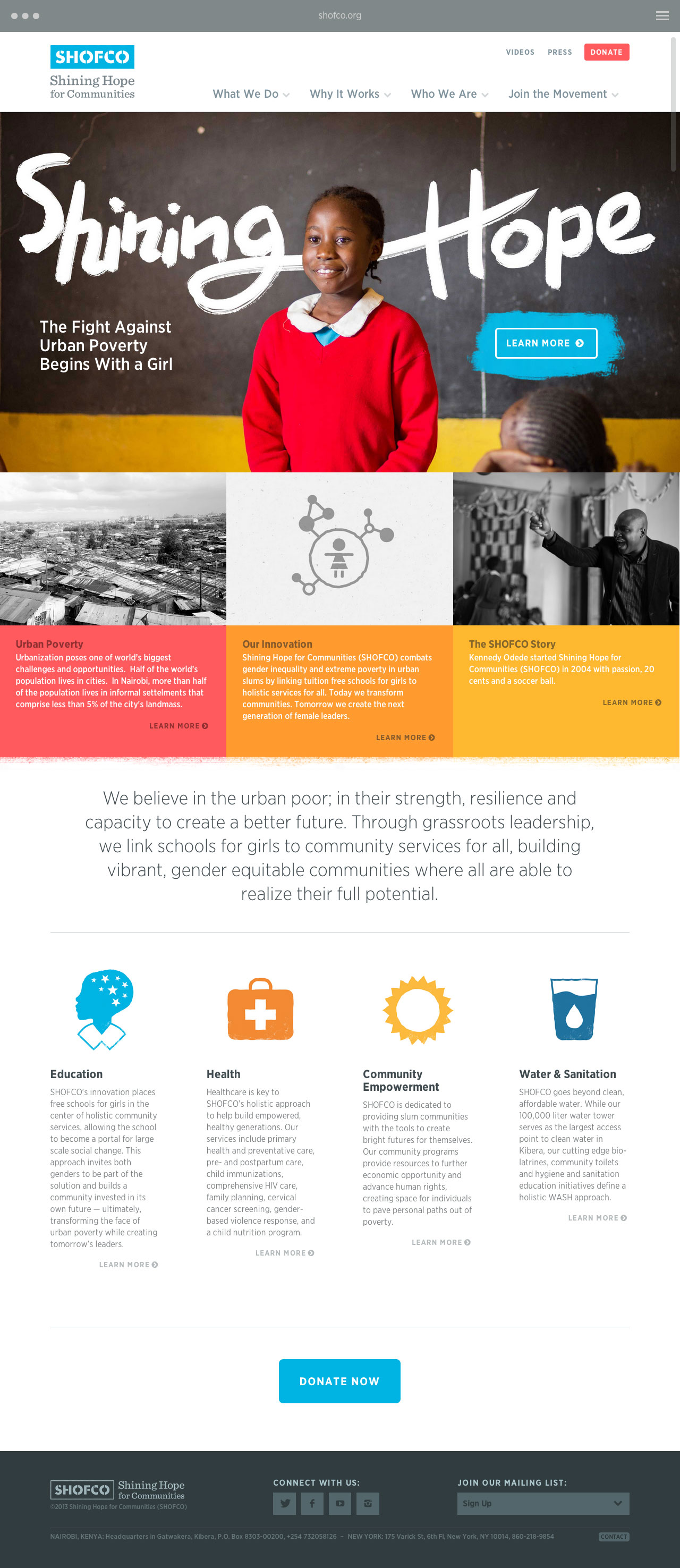 As part of the branding process, Candace spent several weeks in Kibera, immersed in the SHOFCO community, documenting their work to provide a library of images for their website, donor reports, and social media presence.