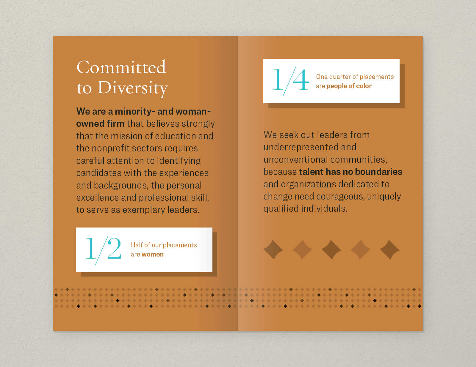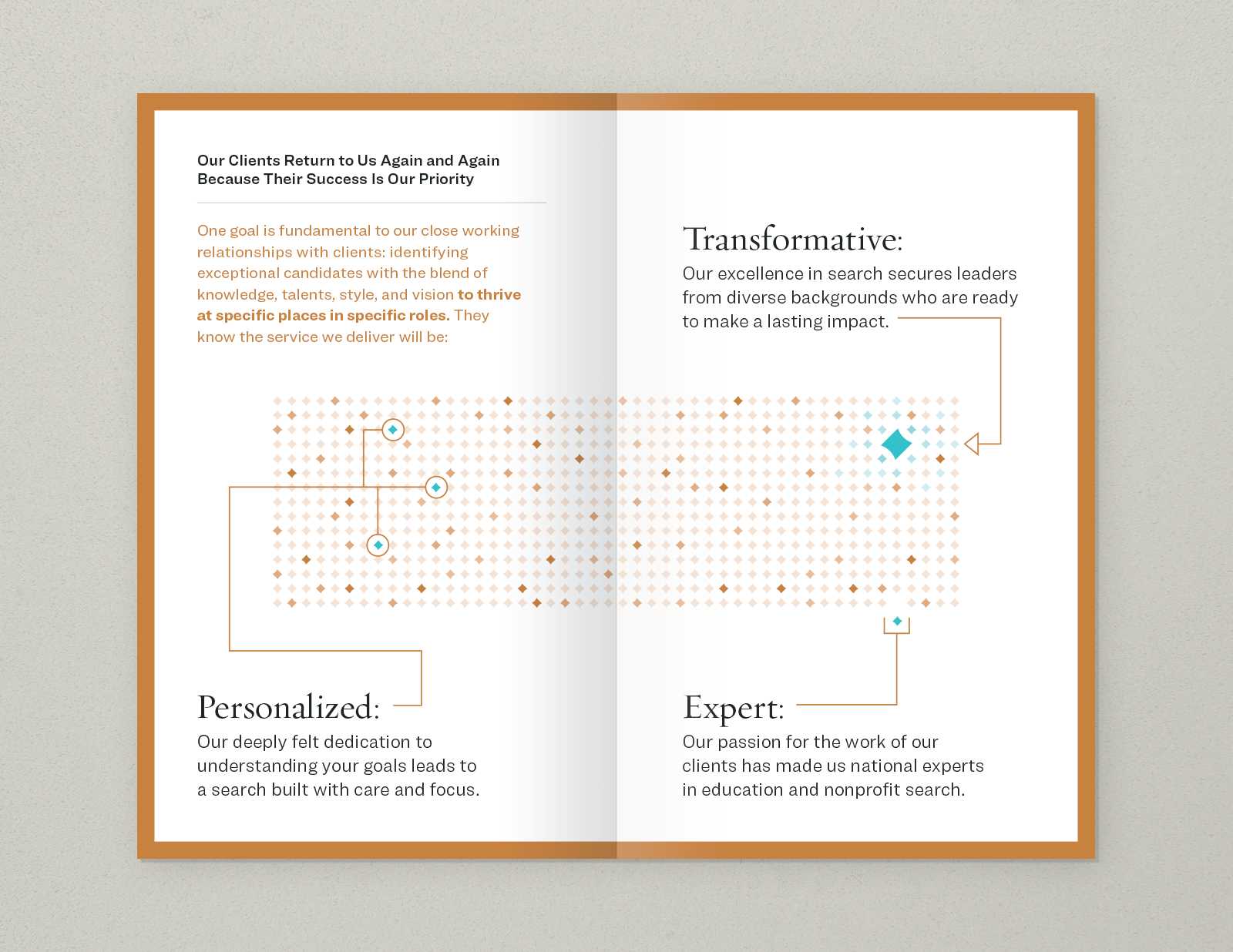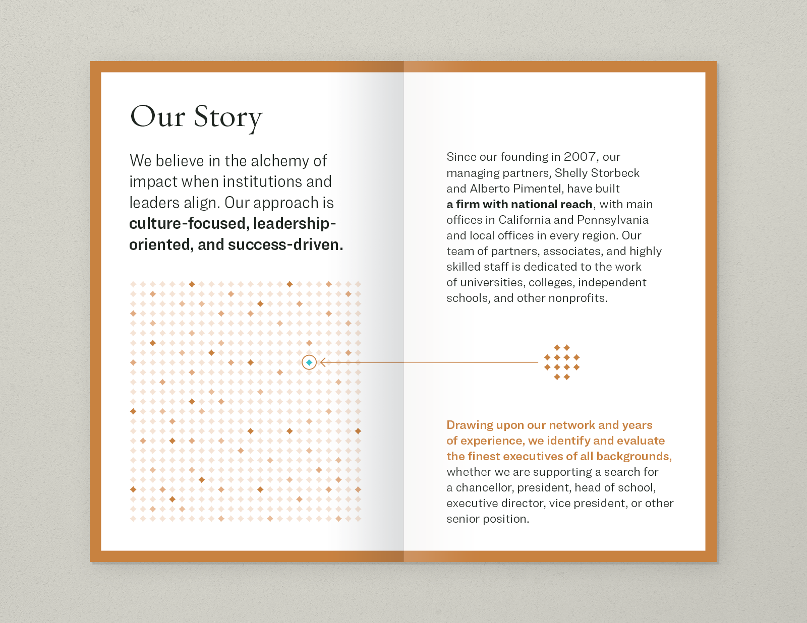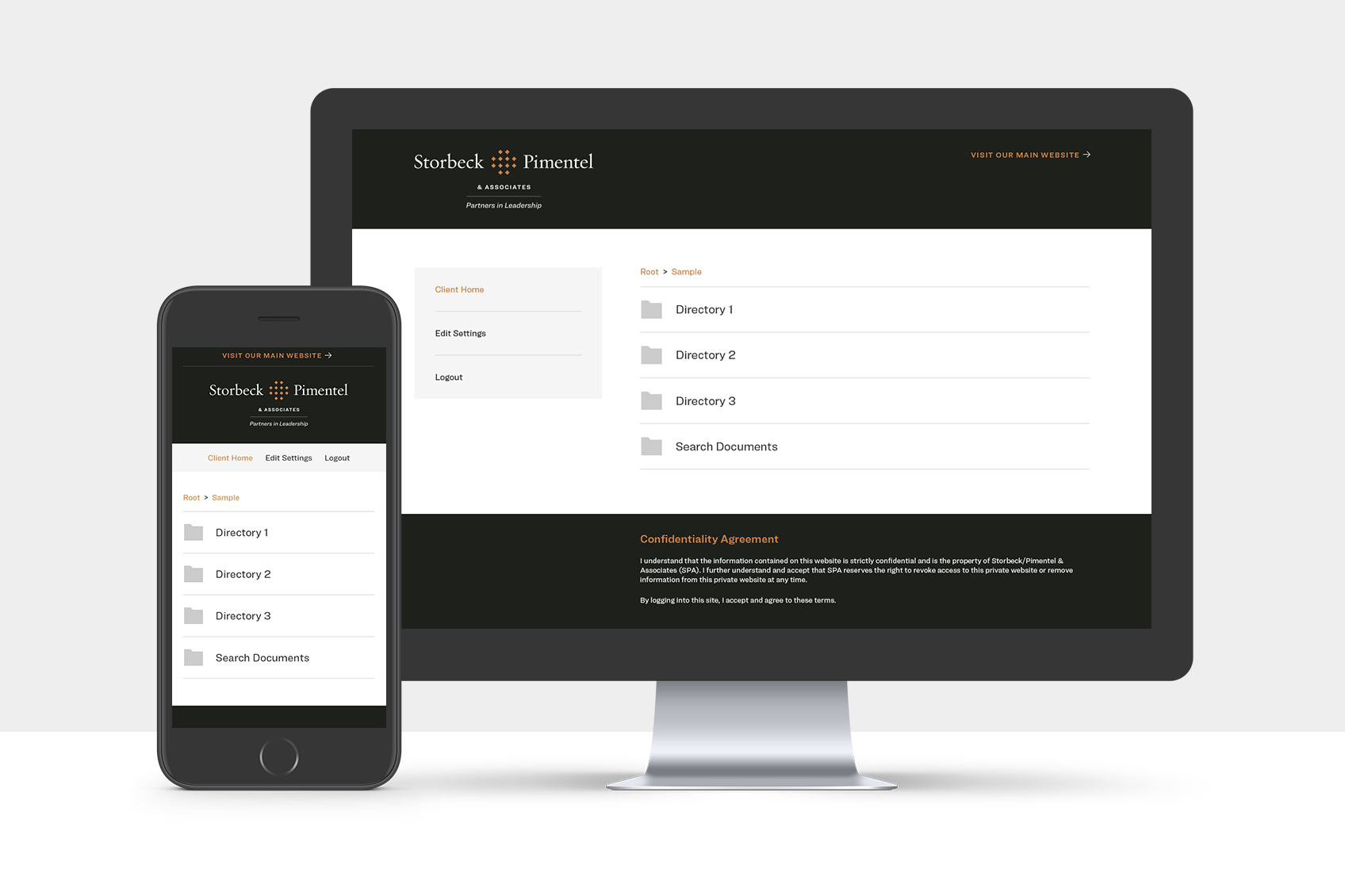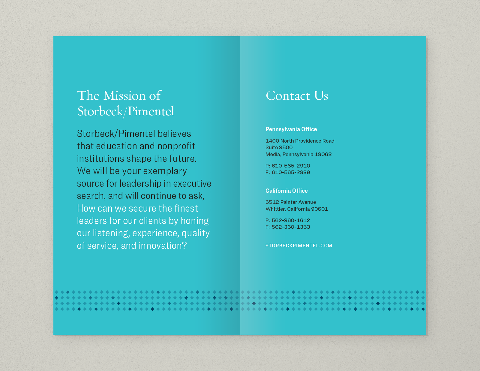 Following the rebranding of Storbeck Pimentel (an exective search firm focussed on education), I worked on a number of design projects to implement and extend the new brand, including: print design for a collateral brochure, illustrations for a suite of graphics, and interface design for a client portal document sharing website.